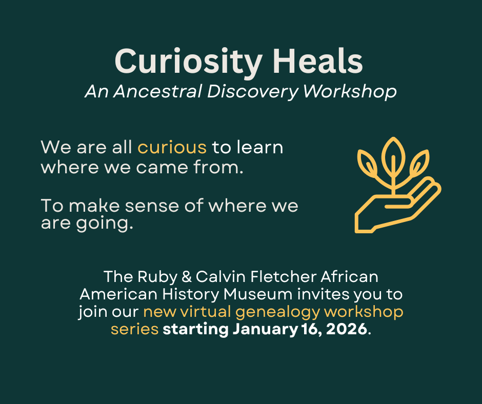 If you have ever asked yourself these questions, The Ruby & Calvin Fletcher African American History Museum invites you to join our new virtual genealogy workshop series Curiosity Heals starting January 2026. Sessions will guide participants through the healing process of researching, relating, documenting, and honoring their ancestors.